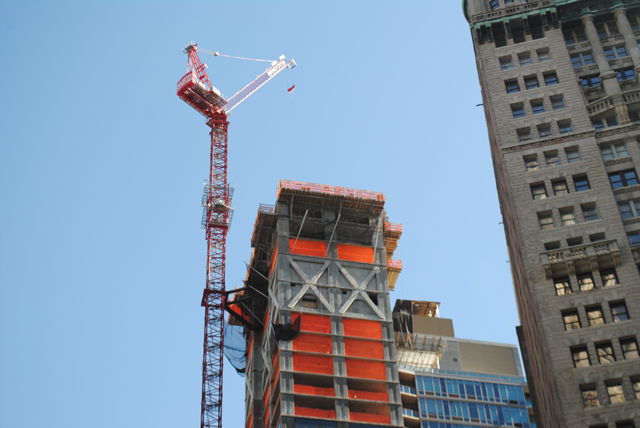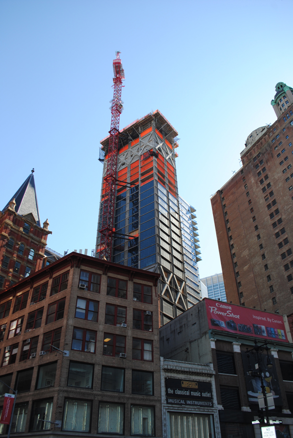 Gerner Kronick + Valcarcal is the architect and GFI Capital/GB Lodging are the developers. The new tower will eventually total 47 floors and 700 feet, with two parapets included to echo the adjacent Temple Court Building, which is being converted into a hotel. The tower has been dubbed ‘The Beekman’ and will have 68 condominiums in total, while the hotel portion of the project will have 287 rooms.